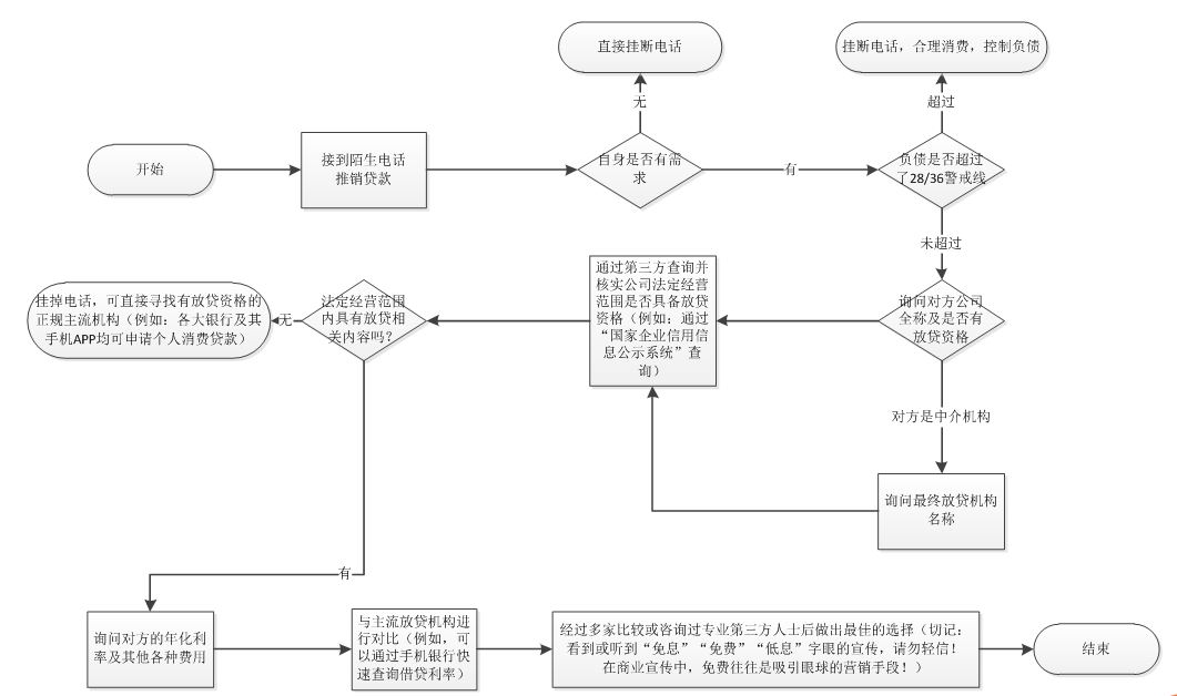 金融消費(fèi)者在接到陌生推銷電話可以參考如下的流程圖來處理: